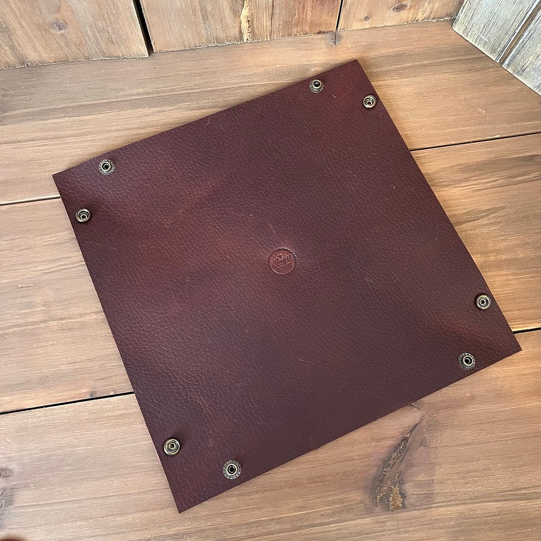 Perfect for holding keys, coins, pocket knives, watches, or other small carry items, this tray brings simple organization to your desk, nightstand, or entryway. The snap corners allow it to fold flat, making it easy to pack for travel or bring along for game night as a durable leather dice tray.