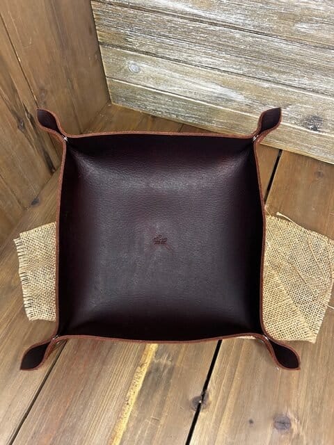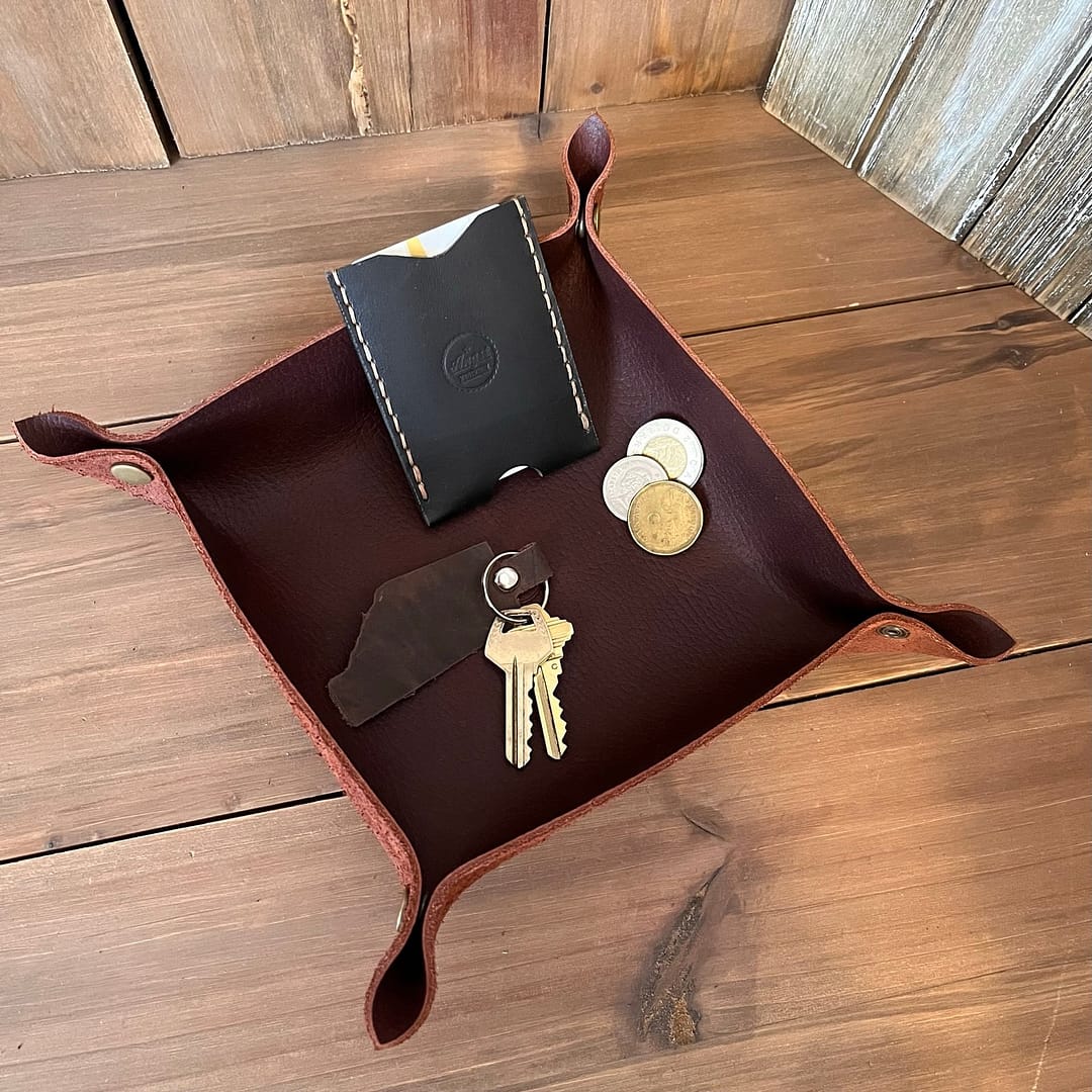 Keep your everyday essentials organized with this handmade leather valet tray, crafted from premium full grain leather and built to last for years of daily use.