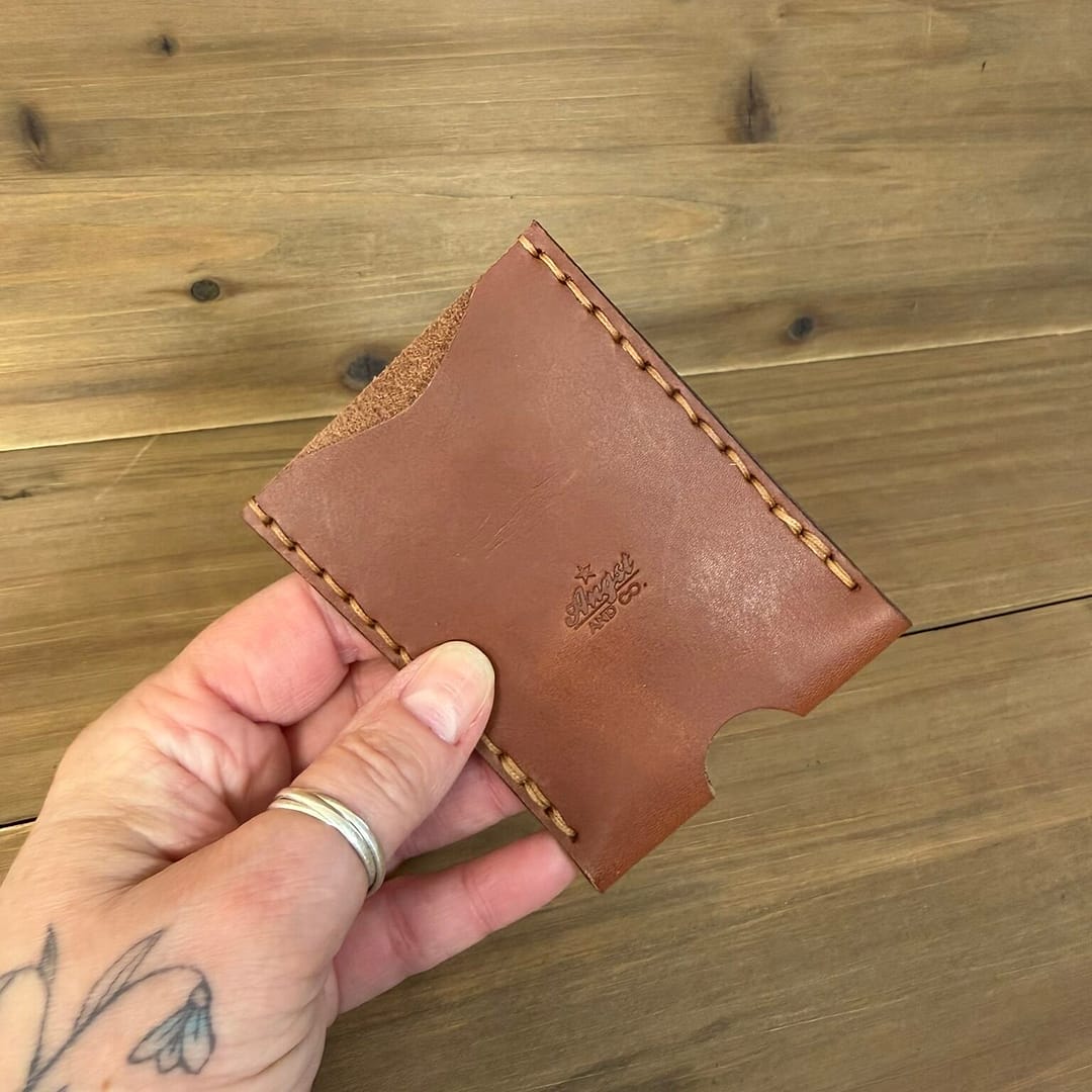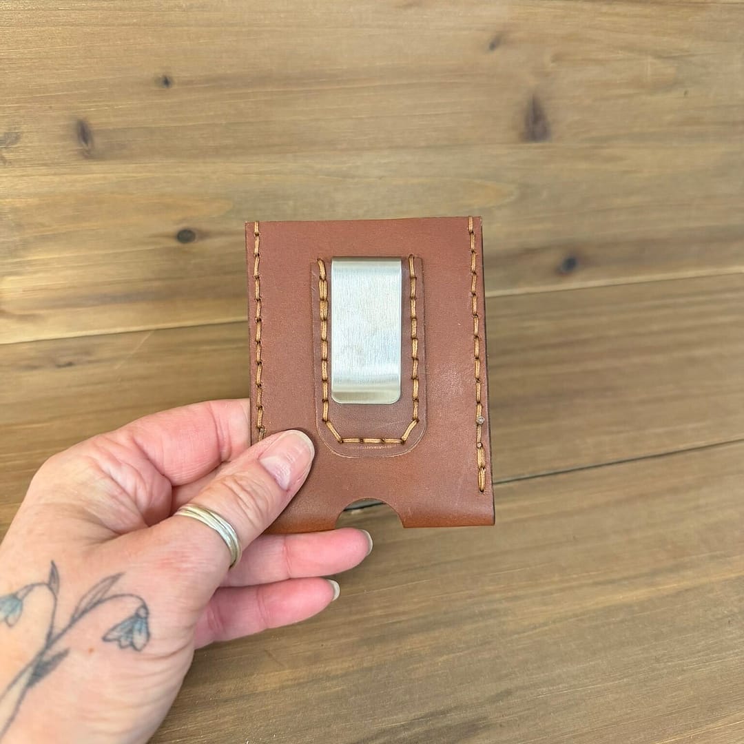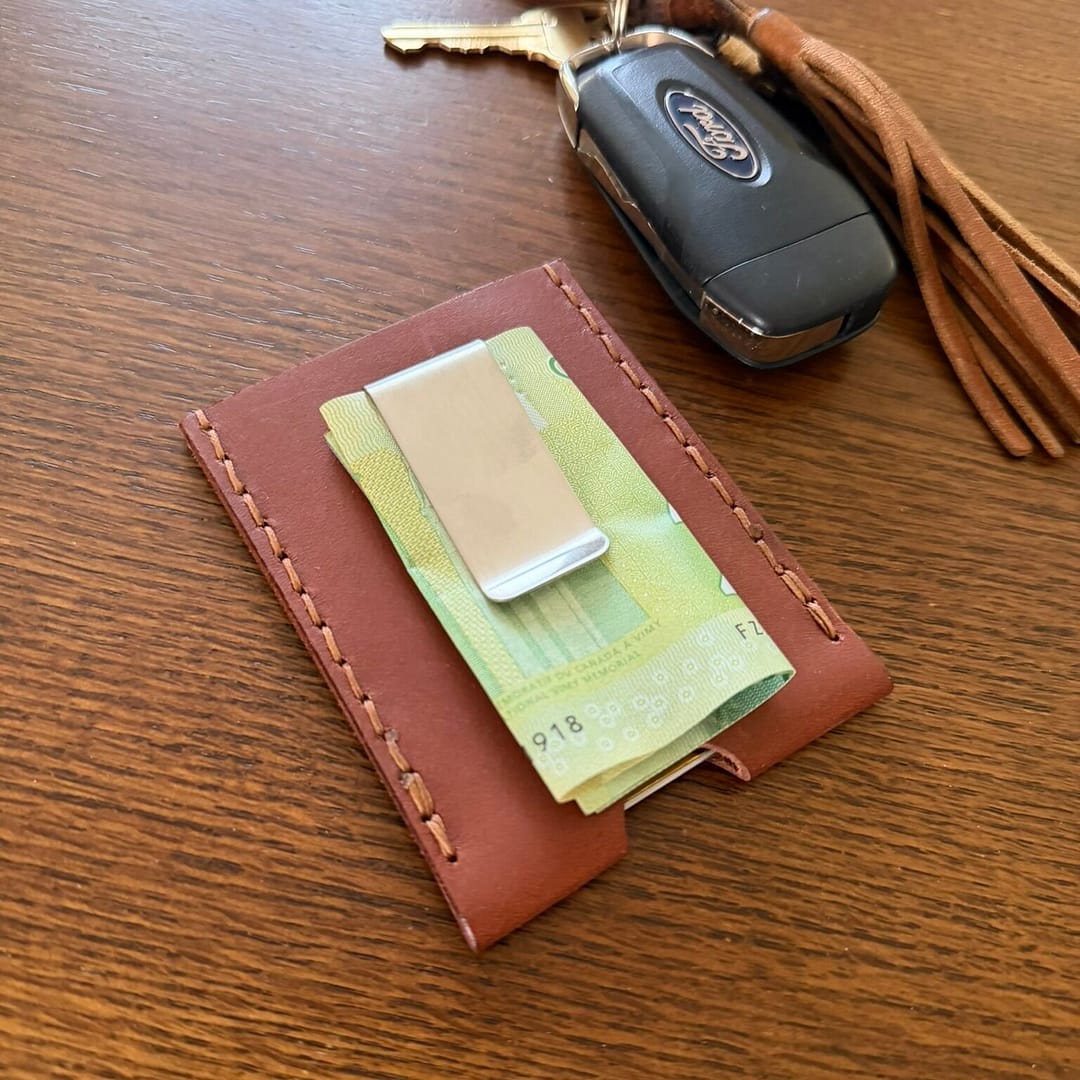 This wallet is handmade from genuine leather and has a clip for your bills. It is both compact and stylish, and the genuine leather will feel great in your hand.