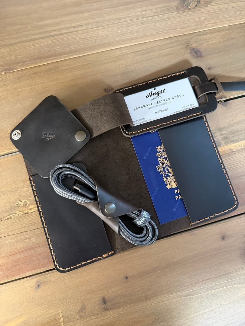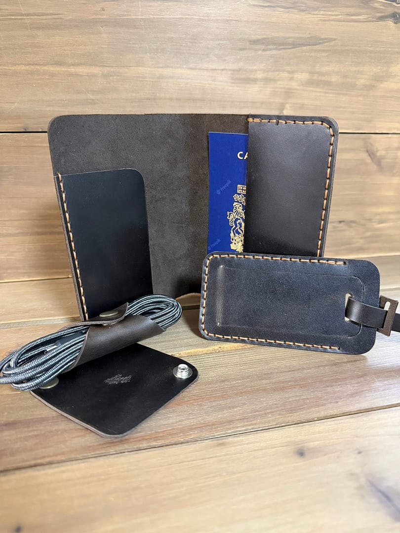 A complete leather travel set designed to be used, not set aside. Handmade from thick full grain leather, each piece is built to handle years of travel while keeping essentials organized from departure to arrival. The set includes a passport holder, luggage tag, and cord wraps, all designed to work together in a clean, cohesive way. It’s a thoughtful, practical gift that won’t be replaced after a season, but used on every trip that follows.